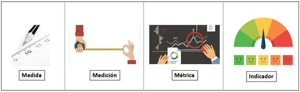 Partiendo de esta premisa, revisemos 4 conceptos que se tienden a confundir, estos son: Medida, Medición, Métrica e indicador.