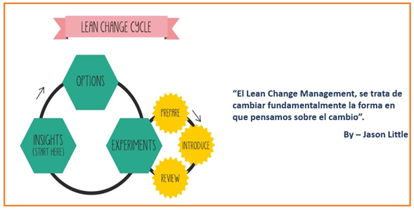 Mi querido amigo lector, Jason Little escribió un libro llamado Lean Change Management, en el cual nos muestra cómo implementar un cambio exitoso a través de ejemplos de prácticas innovadoras que pueden ayudar a alcanzar el éxito de los programas de cambio. Lean change management es el modelo creado por Jason Little, que tiene sus bases en el método Lean startup y su enfoque, es la gestión del cambio. El cual, parte de la siguiente premisa “por más que lo intentes, el cambio no puede controlarse”, y esta es la realidad a la que nos enfrentamos comúnmente los agentes de cambio.